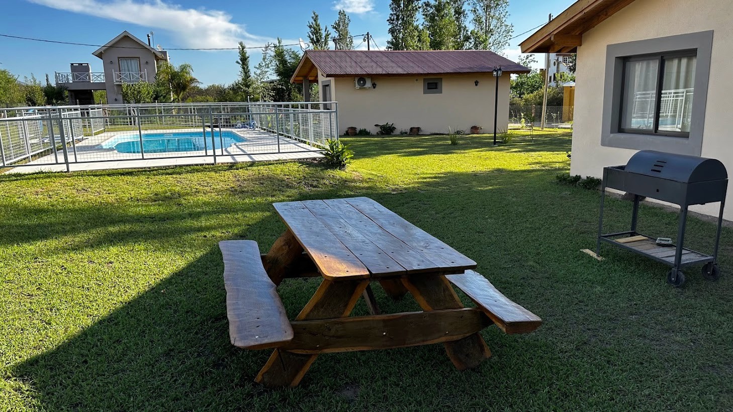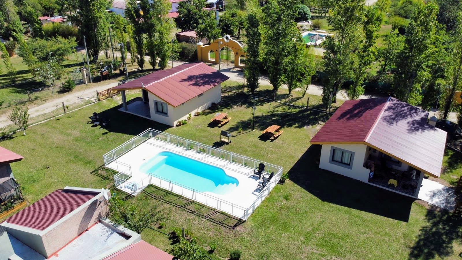 Rodeadas por un extenso terreno de 1000 m2, nuestras cabañas ofrecen una hermosa vista a las sierras, una piscina con solarium, y una zona de parrilla para disfrutar al máximo de su escapada.